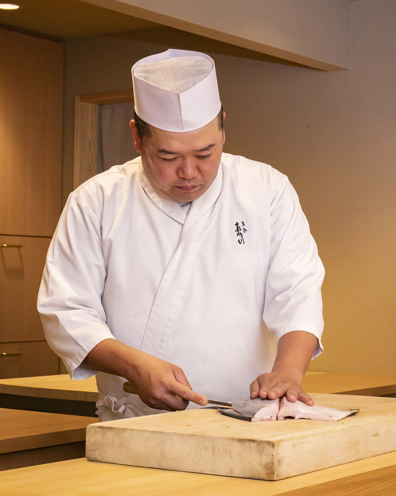 大阪府出身。辻調理師専門学校を卒業後、料理人としての修業を開始。大阪、京都の料理店複数店舗にて修業、研鑽を積む。2016年6月、大阪西天満、老松町に【老松 喜多川】を開業。選び抜いた旬の食材で組み立てる献立、卓越した技が評判を呼び、開業2年目にしてミシュランの星を獲得。